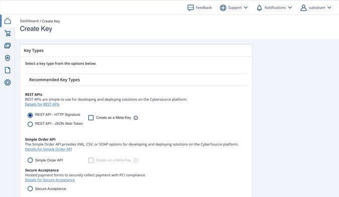 Managing your payment platform integration keys shouldn’t be complicated or difficult. That’s why we’ve invested into streamlining the process. You can now generate and managing your integration keys directly from the main menu of the Cybersource Business Center using our Key Management feature. From the Business Center you can quickly identify the keys you need, generate the keys with a simple 3-step process, and view a dashboard of the keys most often used by your organization.